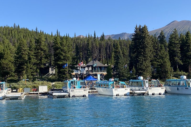 De boten van Maligne Lake Cruise