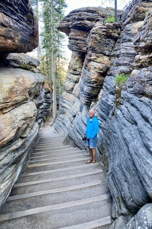 Eerste stop op de Icefields Parkway bij Athabasca Falls