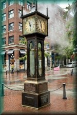 Best prima geslapen, paar keer wakker geweest maar het is toch tot 6.00 uur gelukt. Het heeft de gehele nacht behoorlijk geregend en helaas is dat ook voor vandaag de hele dag zo gebleven, in het totaal zo’n 90 mm gevallen. Het is werkelijk geen minuut droog geweest. Geen fietstocht dus met dit weer, we besluiten Vancouver te voet te verkennen. Gehuld in regenjas en met paraplu gaan we na ons ontbijt op pad met als eerste bestemming Stanley Park. Te voet gaan we maar een klein rondje doen tot aan de totempalen. We vervolgen hierna onze route via een wandelpad langs Coal Harbour naar Canada Palace. Een gebouw wat de haven insteekt als een schip met een opvallend wit teflon dak in de vorm van een aantal zeilen. We beperken ons gezien het weer tot een bezoek van de binnenkant van het pand en laten de promenades voor wat ze zijn. Op vijf minuten lopen van Canada Palace ligt de gerenoveerde wijk Gastown. Een van de oudste en mooiste wijken van Vancouver, met ook de beroemde Steamclock waarvan elk kwartier de stoomfluiten klinken. We genieten hier een tijdje van in het tegenover gelegen Water Street Café waar we echt heerlijk geluncht hebben met een lekker glaasje rosé.