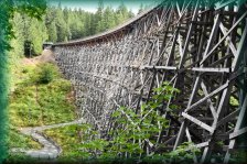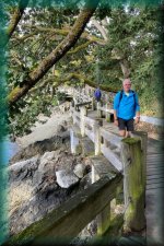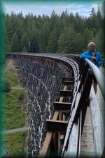 Vanochtend wakker geworden met een prachtige zonsopkomst. Vandaag gaan we deze geweldige plek aan het water verlaten om over te steken naar de ander kant van Vancouver Island, 340 km verderop naar het Pacific Rim NP. Maar we doen dit geleidelijk aan,maken onderweg nog een aantal stops. Als eerste wordt dat Kinsol Trestle, een oude volledig houten spoorwegbrug. Prachtige constructie!