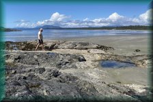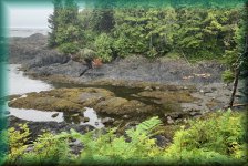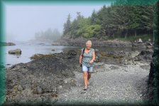 Vanochtend rijden we naar Ucluelet om de Wild Pacific trail in combinatie met de Lighthouse trail te lopen. De zeemist in de ochtend, typisch voor dit gebied, is nog volop aanwezig. Het is een mooie, redelijk goed te lopen trail langs de ruige kust met de prachtige zo typische vegetatie. Heel geleidelijk aan zie je de zon zijn best doen om er doorheen te komen en tegen de tijd dat we klaar zijn is het volop zonnig geworden. We doen in Ucluelet nog wat boodschappen om te koken want de door ons geplande bbq kan niet doorgaan. Open vuur is absoluut verboden sinds de grote brand in de Cameron Bluffs die sinds een kleine week huishoudt op Vancouver Island.
