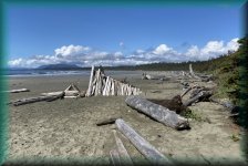 En nu op naar het Pacific Rim NP, een prachtige combinatie van bergen, regenwoud en ruige kustlandschappen. We verblijven daar op camping Green Point aan Long Beach, een ongerept strand van 16 km. Hoe verder we het regenwoud inrijden hoe meer het gaat miezeren. Was ook wel te verwachten in deze regio. Zo’n km of 7 voor de ingang van het Nationale Park spotten we aan de linkerkant van de weg een rustig scharrelende zwarte beer. Helaas niet vast kunnen leggen want met zo’n gevaarte als deze camper plotseling op de rem gaan staan is geen succes en er zaten nog auto’s achter ons. Nog een korte stop bij het Visitor Center en dan naar de camping. Wat een prachtige plek weer. Onze camper staat midden tussen de met mos begroeide bomen en de de varens, de typische vegetatie van een regenwoud. Echt prachtig. Het loopt inmiddels al tegen zevenen dus we gaan vandaag verder niet meer veel zien van de omgeving maar morgen weer een nieuwe dag.