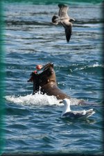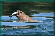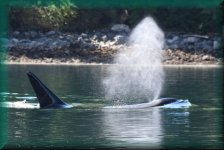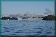 Wat een prachtige omgeving alleen al om er door heen te varen en het is super weer. Na een ruim een uur spotten we onze eerste orca’s. Eerst nog ver weg maar geleidelijk aan komen ze dichterbij en uiteindelijk zijn ze op zo’n 20 meter afstand. Je hoort ze spuiten, prachtig! De volgende dieren die we spotten zijn een grote groep zeeleeuwen. Prachtig om te zien hoe die de springende zalmen vangen. We lunchen op een mooi stekkie op Stuart Island.