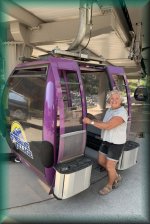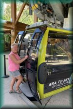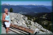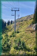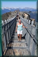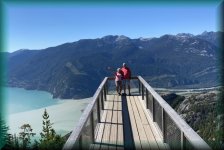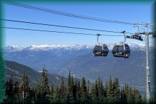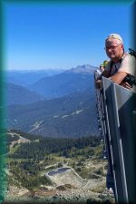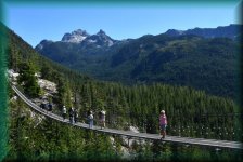 Bij Whistler Mountain gaan we nog verder naar boven naar de top met de stoeltjeslift en via een suspension bridge komen we op een platform met werkelijk een fenomenaal uitzicht. Overal waar je bent heb je een 360 graden view. Wat een prachtige omgeving is het, zeker met dit zonnige weer. Wat dat betreft treffen we het enorm om hier dan ook maximaal van te kunnen genieten. We doen wat korte trails en na een verblijf van zo’n vier en een half uur gaan we met de gondel weer naar beneden na eerst nog een keer met de Peak to Peak gondel op en neer geweest te zijn.