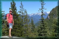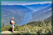Aansluitend lopen we de Eagle Knoll trail. Redelijke trail omhoog met een prachtig uitzicht op Lake Revelstoke. Jammer dat het niet helemaal helder is. Via de Upper Summit trail, een klim van 1 km komen we op de top. We lopen daar nog de Fire Lookout trail met de wachtvuurtoren en de First Footsteps trail. Boven heb je een prachtig 360 graden uitkijk. Echt een prachtige plek, zeker met dit mooie weer. Hierna dalen we weer 1 km af naar de parkeerplek van onze camper. Weer de nodige kilometers in de benen met ook wel veel klim en klauterwerk vandaag. Terug op de camping dan ook beentjes omhoog, lekker in het zonnetje en later weer de bbq, het wijntje en de vuurkorf.