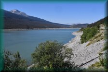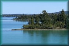 We nemen de stoeltjeslift terug en vergezeld van talloze squirrels lunchen we op een bankje in het zonnetje. Het is daar heerlijk maar we moeten uiteindelijk ook verder. We nemen de gondel weer naar beneden en bezoeken kort nog een drietal meren Johnson, Two Jack Lake en Lake Minnewanka. Ook hier wat heiig door de rook.