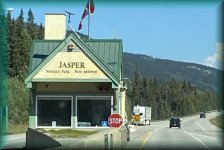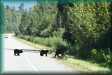 We rijden het park uit en gaan noordwaarts met als uiteindelijke bestemming Jasper National Park. Vlak voor het plaatsje Blue River komt er ineens uit het niets een moeder beer met twee kleintjes de weg over. Geweldig. Jeroen kon het gelukkig nog net op tijd vastleggen met de camera.