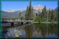 Vandaag een dagje in en om Jasper. Dus we slapen uit, ontbijten lekker in het zonnetje en gaan dan op pad. Eerst rijden we naar Pyramid Lake en maken daar een korte wandeling over Pyramid Island. Prachtig met dit weer. Geen zuchtje wind en alles weerspiegelt prachtig in het water. Na deze wandeling gaan we naar het aangrenzende Patricia Lake en relaxen daar even in de voor Canada bekende rode stoelen.