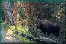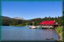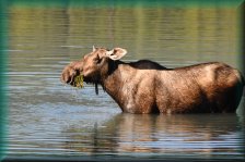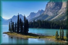De dag is nog maar half voorbij maar is nu al een topdag. Vanochtend zijn we in alle vroegte vertrokken naar Maligne Lake, in de hoop wild te spotten op dit vroege tijdstip, helaas! We ontbijten op de parkeerplek bij Maligne Lake en lopen dan tegen negen uur naar het meer voor een boottocht naar Spirit Island, de meest bekende fotogenieke plek van Canada. Aan het meer staat een moose in het water die zich te goed doet aan de waterplanten op de bodem. Mooi gezicht.