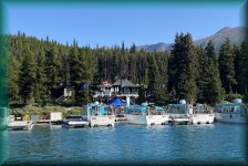 Tegen half vijf zijn we terug op de camping met toch weer veertien km in de benen. Lekker nog even uitgebreid douchen op de camping want dat wordt de komende dagen in de Pacific Rim wat meer back to basic, en hierna met een wijntje in het zonnetje genieten van het uitzicht, de bootjes en de watervliegtuigen.