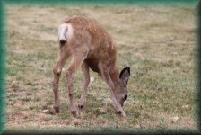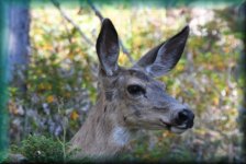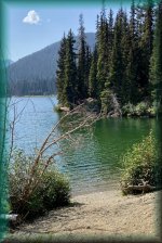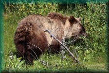 Verder rijdend richting Medicine Lake spotten we plotseling een GRIZZLYBEER. We hebben het beste beest geruime tijd kunnen volgen omdat deze lekker aan de kant van de weg meeliep, ondertussen smullend van de bessen aan de struiken. We konden er geen genoeg van krijgen. Zijn dan ook blijven kijken tot die weer het bos in verdween. Verderop nog een laatste stop gedaan bij Medicine Lake. Nog helemaal hyper allebei van wat we gezien hebben rijden we richting camping. Vlak voor de camping spotten we nog enkele elks maar die zijn al wat verder weg. Wat een ochtend.