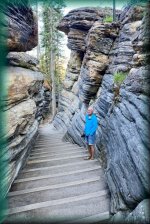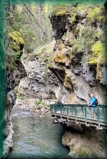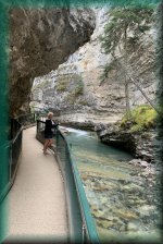 Eindelijk weer heerlijk geslapen! We staan vroeg op om voor de drukte uit in alle rust de populaire Johnston Canyon trail te lopen. Het is een goed toegankelijke smalle kloof waar een onstuimige rivier met watervallen doorheen loopt. Door de kloof is een wandelpad aangelegd, vaak met stalen constructies vastgemaakt aan de wanden. Het is een langzaam stijgend pad allereerst naar de Lower Falls en verder op de Upper Falls. Heen en terug zo’n kleine 5 km. Het is er inderdaad nog heerlijk rustig en het is een prachtige wandeling.