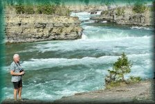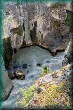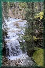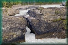 Het is al na de middag als we na de lunch verder rijden naar de Numa Falls in Kootenay NP. Geen grote waterval maar wel een mooie. Je ziet hoe hier de kracht van het water van die mooie ‘potholes‘ heeft uitgesleten in het gesteente.
