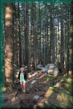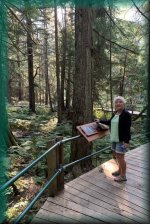 Vanochtend maar even het kacheltje aan in de camper bij het opstaan. De nachten zijn hier al redelijk koud. Na het ontbijt op pad voor wat korte trails hier in de buurt. De eerste is de Rockgarden trail Een route door velden van enorme keien die er in de laatste ijstijd terecht zijn gekomen. De trail loopt dwars het leefgebied van de zwarte beren en grizzly beren. Dat maakt dat je toch extra goed om je heen kijkt. Met al dat geklauter over die rotsen is het niet snel even wegkomen. De volgende trail, een makkelijke is een boardwalk door het regenwoud, de Hemlock Grove Boardwalk. Leuk om even doorheen te lopen.