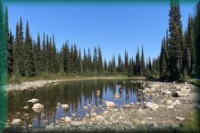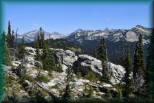 We rijden door naar Mount Revelstoke en gaan via de 26 km lange Meadows in de Sky Parkway via talloze haarspeldbochten naar Balsam Lake vlak bij de top van de 1920 meter hoge Mount Revelstoke. Als eerste wandelen we de Balsam Lake trail. In de winter ligt hier 4 meter sneeuw en straks in oktober is het meer nagenoeg droog.