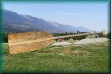 We hebben allebei al een paar dagen niet zo best geslapen. Of het er nu aan ligt dat we pal aan de rivier stonden, geen idee. Vandaag rijden we door naar Kootenay NP. Eerst nog weer wat boodschappen en tanken in Golden. We moeten het met de vers producten wat uitkienen want vrijdag gaan we de grens over naar Amerika en we mogen abosoluut geen vers vlees groente en fruit invoeren. Hierna gaan we door richting Radium Hotsprings na een korte stop bij The world’s Largest Paddle. Gewoon grappig. Achter in een weiland op een erf tussen de balen gras. Je kunt maar wat hebben.