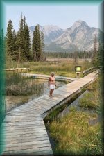 Van hier uit de bus naar de andere zijde van de stad naar de Cave en Basin Natural Historic Site. Een op sommige plaatsen sterk naar zwavel ruikende warmwaterbron ontdekt in 1883. En warm water was een zeldzaamheid in die badkamerloze tijd. We lopen een pad langs het omringende moerasland wat door het warme water van de bronnen wordt gevoed en ook niet bevriest in de winter.
