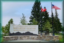 Op weg hier naar toe maken we nog een stop bij de Lundbreck Falls en hier aangekomen bij onze camping in Waterton Lakes NP, Townsite maken we nog een wandeling naar het monument Peace Parc en naar de Cameron Falls. Ook de in de boeken vermelde Scoop Icecream vereren wij ondanks het wat koude weer met een bezoekje. Wel een kleine doodzonde waard.