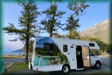 Dat het ellende is zien we ook als we naar Jasper zelf gaan. Hele wijken weggevaagd, aan de rand van het stadje allemaal noodwoningen. Bedrijven werken vanuit mobiele bussen om toch nog hún producten aan de man te brengen. Er wordt volop herbouwd en er is veel veerkracht zo te zien. We will be fine is wat je regelmatig op een spandoek leest. Het historische centrum is gespaard gebleven bij de brand. Na een late lunch nog wat boodschappen en tanken want overmorgen gaan we de Icefields Parkway op en dat kent geen enkele voorziening en ook geen bereik. Terug op de camping nemen we onze plekjes weer in achter de camping vanwege de warmte en genieten we in de avond van een bbq in het zonnetje.