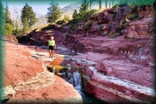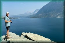 We vervolgen onze weg naar een ander deel van Waterton Lakes en gaan naar de Red Rock Canyon. Deze kloof bestaat uit rood en groen gesteente. We wandelen een stukje door de kloof en de kleuren zijn werkelijk prachtig. Terug in het centrale gedeelte van het park zoeken we een mooi uitzichtpunt om het prachtig gelegen Prince of Wales hotel op de prent te zetten, het ligt op een heuvel omringd door meren. Dan gaan we toch dit mooie park verlaten en lunchen we er net buiten op een lekker stekkie aan het meer.