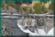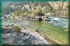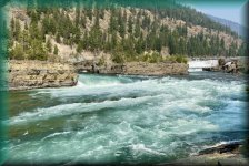 Vandaag rijden we zelf met de camper nog een stukje Glacier NP en lopen de korte Running Eagle Falls Nature trail. Een bijzonder fenomeen want deze waterval komt onder de rots uit maar je ziet niet waar die begint. We verlaten Glacier NP en rijden geleidelijk aan weer naar de Canadese grens die we morgen over willen steken. Het gebied wordt in eerste instantie vooral gekenmerkt door grote ranches met enorme weilanden. De plaatsen hebben de sfeer van cowboy stadjes. We doorkruisen ook Kootenai National Forest. Een prachtig gebied en zeker de trail naar de Kootenai Falls en de andere kant op naar de suspension bridge is een aanrader! Een aantal stoere meiden gaan de kolkende rivier af in een kajak. Een spektakel om te zien en we blijven dit dan ook enige tijd bewonderen.