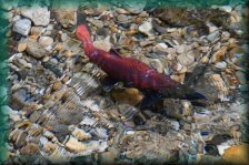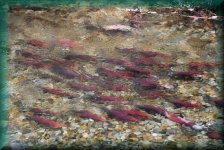 We vervolgen onze weg naar Kootenay Bay waar we met de ferry de gratis overtocht maken naar Nelson van zo ‘n 35 min. Gratis omdat men hier vindt dat het onderdeel uitmaakt van het wegennet. Valt iets van te zeggen want met een 90 km lang meer moet je anders wel erg ver omrijden. Voor we Nelson binnen gaan stoppen we bij Kokanee Provincial Park om bij Kookanee Creek de zalmtrek te zien. Die is in september. Ze gaan dan massaal terug naar hun geboortegrond om eitjes te leggen en dan te sterven. Wij wandelde een trail parallel aan de kust richting de Creek en kwamen uit bij een gesloten hekwerk. Aan de andere kant stond dat men van daar uit niet verder mocht ivm aanwezigheid van beren met deze grote hoeveelheid zalmen in de creek. Wij maar gauw door het hek om aan de veilige kant te komen. We hebben echt onwijs veel zalmen gezien vechtend tegen de stroom in voor hun laatste reis.
