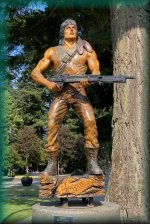 We maken een korte wandeling door Hope en zien de kettingzaag beelden en uiteraard ook een beeld van Rambo.