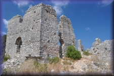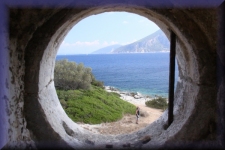 Via Dafnoudi vervolgen we onze weg naar het werkelijk schitterend gelegen Assos, midden op een schiereiland met op de top een Venetiaans kasteel uit de 16e eeuw. Op een terrasje in het haventje direct aan het water lunchen we, waarna we beginnen aan de klim naar het kasteel. De uitzichten op het plaatsje en de westelijke kust van Erissos, het silhouet van het gebergte, de baai van Myrtos en de open Ionische zee vormen samen een beeld van unieke schoonheid. We blijven dan ook maar fotograferen.