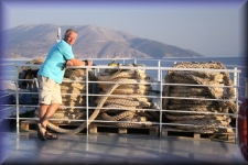 .JPG) Op naar Ithaki. Klokslag half 9 vertrekken we met de auto op de boot van de maatschappij Ionian Pelagos,richting Ithaki om daar na ruim een half uur varen bij Piso Aetos an land te gaan.
